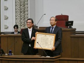 坂口志文氏・北川進氏 京都市名誉市民表彰式(市会議場)(下村議長・吉田副議長出席)