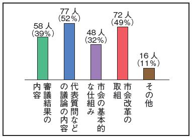 市会だより75号(9月15日号)に掲載した同紙に関するアンケートに、御回答をいただきありがとうございました。主な結果を御紹介します。(回答者数148人)