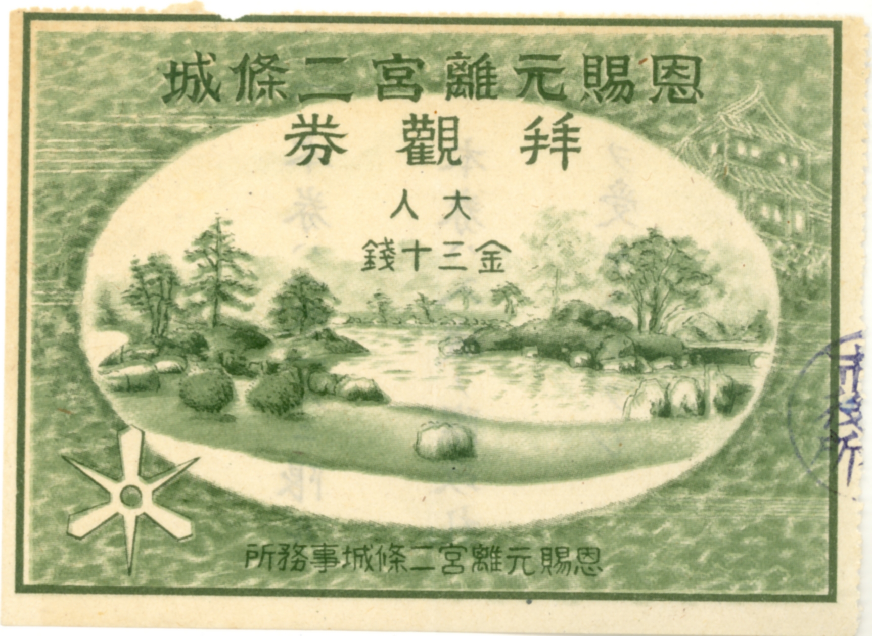 一般公開が始まった頃の入城券。二条城は昭和14年に国から京都市に移管されました。