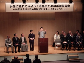 当日は,京都市会から条例制定までの経過について報告を行うとともに,手話劇や手話ワンポイントレッスンなどが行われ,多くの参加者に手話に触れていただくことができました。