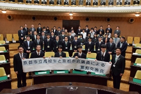 12月27日に,市立高校生34名と市会改革推進委員である議員15名とで「議員と話そう!京都市立高校生と京都市会議員による意見交換会」を開催しました。