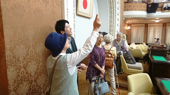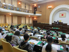 当日は、市会議場の議席に座って、市会の仕組みや役割などについての説明をお聞きいただきました。また、委員会室や傍聴席などを見学していただきました。
