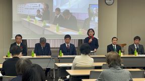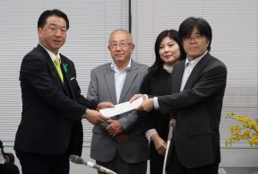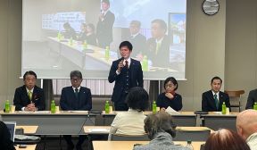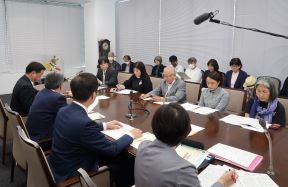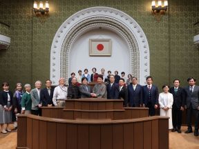 本日、議員提案によるケアラー支援に関する条例の制定に向け、各会派の代表者で構成する、「京都市ケアラー支援条例(仮称)制定プロジェクトチーム」が発足しました。発足式において、寺田座長から西村議長へプロジェクトチームの設置について報告を行った後、「ケアラー支援条例をつくろう!ネットワーク京都(略称:京都ケアラーネット)」から、条例制定に当たっての要望書をプロジェクトチームに提出いただきました。
