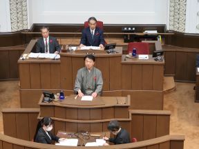 本会議における条例の提案に際しては、プロジェクトチーム座長の寺田議員が提案説明を行い、ケアラーを社会全体で支え、全てのケアラーが自己実現を図ることができる社会の実現を目指す、条例の制定趣旨や概要の説明が行われました。(提案説明の内容はこちら)