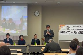 11月23日(土)に立命館大学朱雀キャンパスにおいて開催された、「ケアラー支援条例をつくろう!ネットワーク京都(略称:京都ケアラーネット)」主催の公開学習会「これから始まる『ケアラー支援』~なにが変わるか!?どのように変えるか!?~」に、京都市ケアラー支援条例(仮称)制定プロジェクトチームのメンバーが参加しました。学習会の冒頭では、寺田座長をはじめとするプロジェクトチームメンバーが「京都市ケアラーに対する支援の推進に関する条例」の制定を報告し、会場の皆様とともに喜びを分かち合いました。