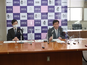 本日,新型コロナウイルス感染症に係る緊急事態宣言について,京都,大阪,兵庫を解除することが発表される見込みであることを受け,京都市会を代表して山本議長から門川市長に対し,緊急の申入れを行いました。主な内容は次のとおりです。