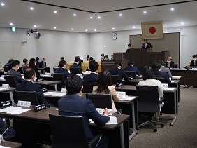 3月9日に,醍醐西小学校の6年生,35名の皆さんが,市会議場の見学に来られ,市会の仕組みや役割,議場について学んでいただきました。市会を代表して山本議長からは,市会の取組や重要性についてのお話がありました。