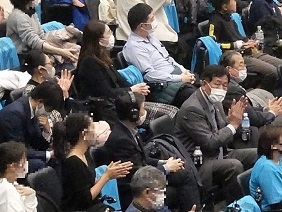 「京都ハンナリーズ」を支援する京都市会議員連盟が,12月12日土曜日にハンナリーズアリーナで開催された,千葉ジェッツ戦を応援観戦しました。当日は,B.LEAGUEの感染拡大防止のルールに基づき,座席間隔を保ったうえで,下村あきら議員連盟会長をはじめ13名の議員が試合を観戦し,声援を送りました。