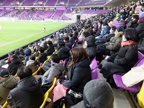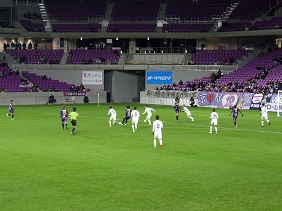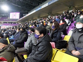 「京都サンガF.C.」を支援する京都市会議員連盟が,12月16日水曜日に,新スタジアムのサンガスタジアム京セラ(亀岡市)で開催された,京都サンガF.C.対ツエーゲン金沢戦を応援観戦しました。試合は,Jリーグのガイドラインに基づき,マスクの着用や手指消毒の徹底,間隔を空けた座席の配置など,感染拡大防止策を講じた上で実施され,当日は,