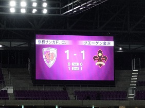 京都サンガは序盤から攻め込み,決定機を作るも得点を奪えず,後半に先制点を決められ苦しい展開に。それでも最後まで粘り強く戦い,後半アディショナルタイムに仙頭選手が同点ゴールを決め,1対1の引き分けとなりました。