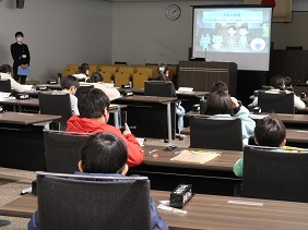 1月13日に,市原野小学校,鞍馬小学校,静原小学校の5年生,計55名の皆さんが,市会議場の見学に来られ,市会の仕組みや役割,議場について学んでいただきました。市会を代表して山本議長からは,市会の取組や重要性についてのお話がありました。