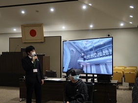 また,予算議案の表決の場面を想定した職員による模擬本会議を御覧いただき,議員になったつもりで議案の賛成・反対の表決に参加いただきました。その後,旧議場のVR体験では,臨場感のある映像を間近に見ていただき,さらに学びを深めていただくことができたのではないかと思います。