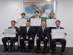 5月25日に開催された第98回全国市議会議長会定期総会において、全国の市議会議員に対し、在職年数に応じた表彰が行われ、京都市会では、赤阪仁議員、山本恵一議員、田中明秀議員、本日、伝達表彰式を開催し、田中議長、