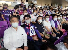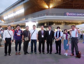 「京都サンガF.C.」を支援する京都市会議員連盟が、9月10日(土)にサンガスタジアムby KYOCERA(亀岡市)で開催された、京都サンガF.C.対鹿島アントラーズの試合応援に参加しました。当日は、橋村芳和議員連盟会長、田中明秀議長、