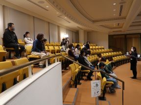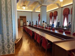 見学会では、議席に座って市会の仕組みや役割を学んでいただき、田中議長からは、京都市会を代表し、市会の重要性などについてのお話がありました。その後、議場の内部を見学いただきました。