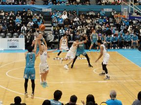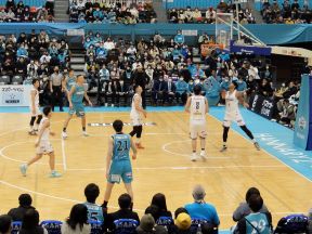 「京都ハンナリーズ」を支援する京都市会議員連盟が、12月17日(土)に京都市体育館で開催された、三遠ネオフェニックス戦の応援に参加しました。当日は、下村あきら議員連盟会長、田中議長をはじめ、12名の議員が試合を観戦し応援しました。試合は、第1クォーターに9点をリードして終えましたが、前半終了直前に逆転を許し、後半は奮闘するも最終スコアは85-92と及びませんでした。