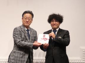 有限会社丸重屋を代表とする共同プロジェクト(株式会社すみれ測量設計事務所、ライカジオシステムズ株式会社、フォーディーラボ及び株式会社神戸清光)から、市会議場VR映像データの寄付の申出を受け、田中議長、式典では、有限会社丸重屋 平手様から寄付目録を受納した後、田中議長及び門川市長から感謝状を贈呈しました。