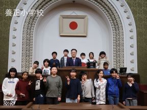 3月10日の午前に養正小学校の5年生17名、午後に市原野小学校、鞍馬小学校の6年生44名の皆さんが、市会議場の見学に来られました。見学会では、京都市会を代表して田中議長から、市会の仕組みや役割についてお話しいただき、児童の皆さんには実際の議席に座って、議場の雰囲気を体感しながら学んでいただきました。