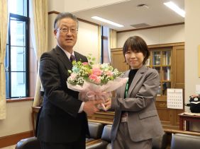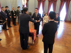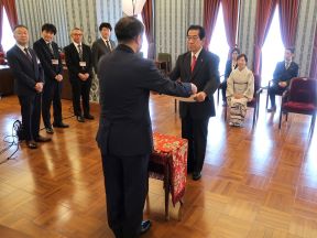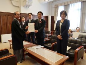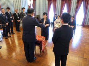 本日は、持参された台南市議会の邱莉莉議長から京都市会の西村義直議長あての親書を、京都市会事務局長に手渡していただきました。