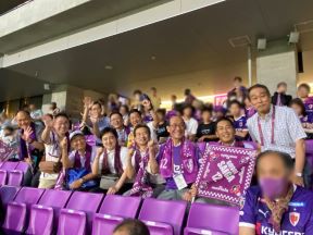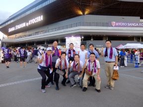 「京都サンガF.C.」を支援する京都市会議員連盟が、8月26日(土)にサンガスタジアムby KYOCERA(亀岡市)で開催された、京都サンガF.C.対アビスパ福岡の試合応援に参加しました。当日は、西村義直議長をはじめ、11名の議員が試合を観戦し、熱い声援を送りました。