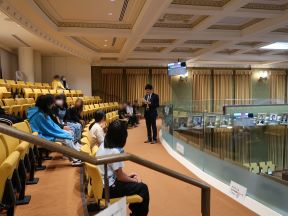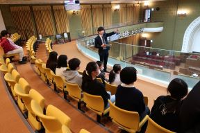 その後、議場の音響や映像の調節を行う調整室など、普段見ることの出来ない議場の裏側も見ていただきました。