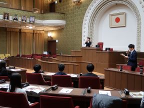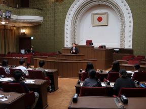 その後、議場の内部の見学や、予算議案の表決の場面を想定した模擬本会議を実施しました。