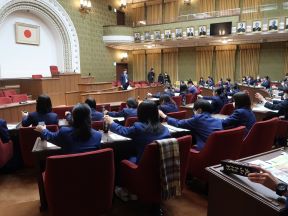 代表質疑は、3月7日(木)・8日(金)の午前10時から、予算特別委員会総括質疑は、3月18日(月)の午前10時から行います。