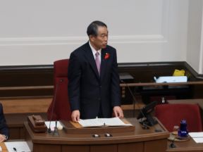 また、議長から、来年2月24日の任期満了をもって勇退される、本日で最後の本会議出席となる門川市長に向け、お礼の言葉が述べられました。