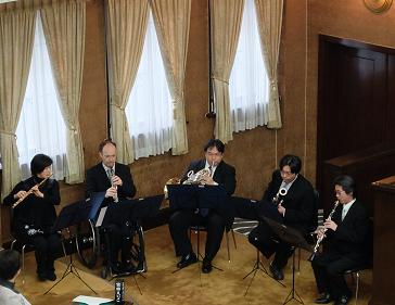 今年度は,木管五重奏により,「京都市歌」とフランスの作曲家イベールの「三つの小品」から第1曲と第3曲を演奏いただきました。