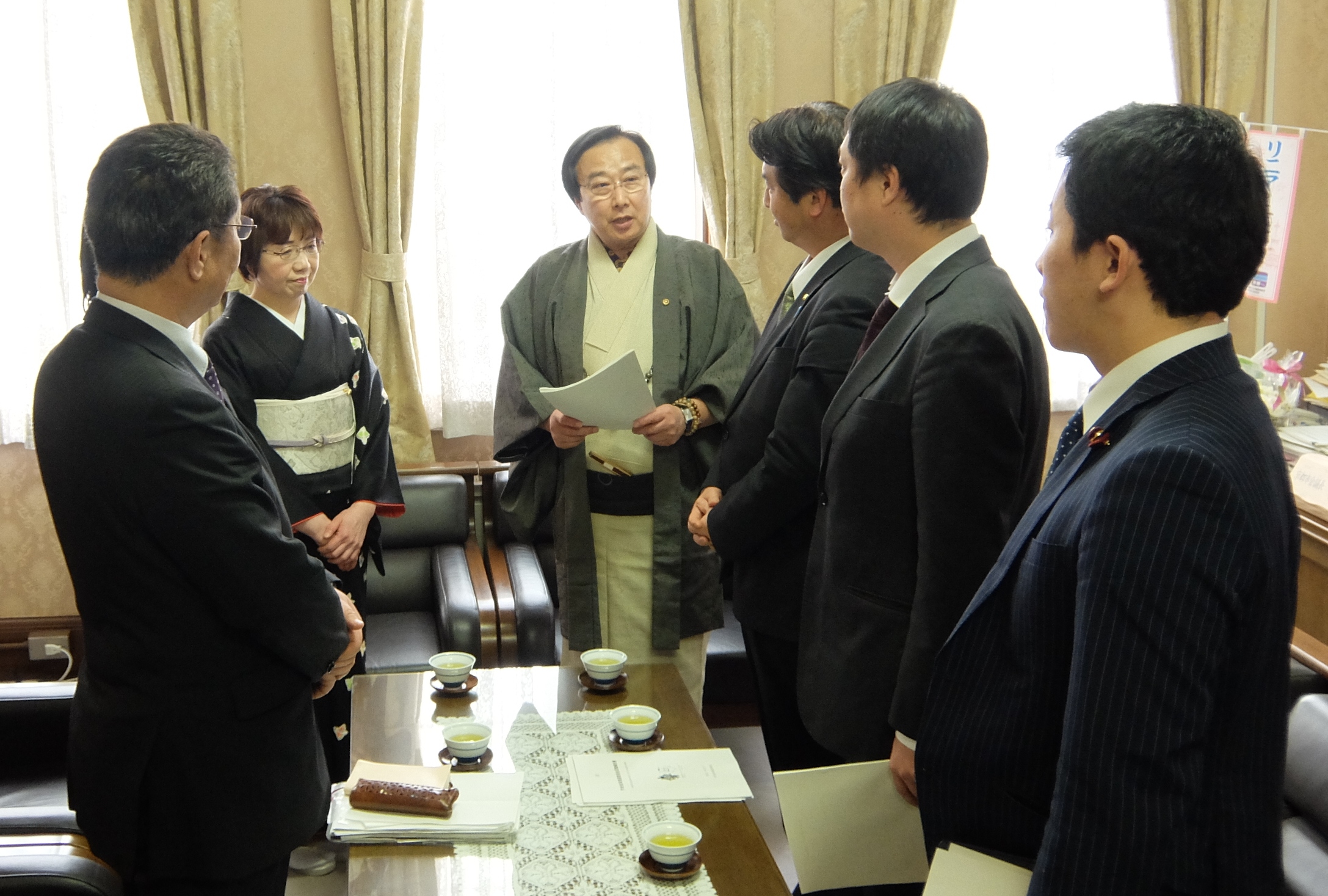橋村芳和議長,隠塚功副議長,寺田かずひろ議員,加藤あい議員,山本ひろふみ議員,
