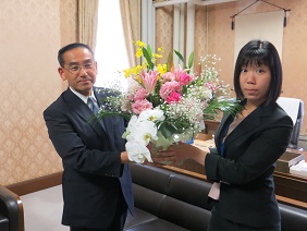 市会事務局長が事務局を代表して御礼の言葉を述べ,事務局職員から花束を贈呈した後,久保副議長から退任にあたっての挨拶がありました。