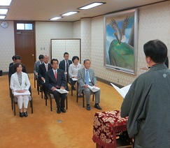 また,冒頭では,大阪府北部を震源とする地震及び平成30年7月豪雨の被災者の皆さまに対しお見舞い申し上げ,犠牲となられた方々に哀悼の意を表し,黙祷をささげました。