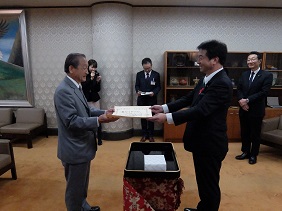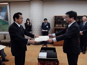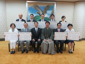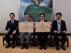 5月30日に東京で開催された全国市議会議長会定期総会で,次の方々が表彰を受けられ,5月31日に,議長から表彰状の伝達と記念品の授与が行われました。