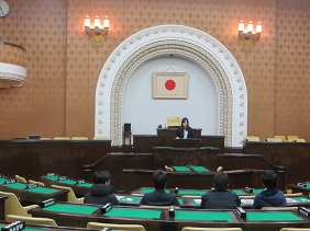 見学の最後には,寺田議長から,市会の意義・重要性についてお話しました。