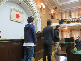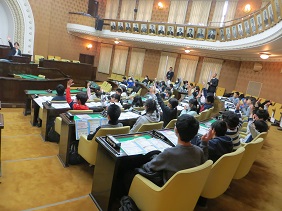 1月16日に,市立山階小学校の6年生18名の皆さんが,市会議場の見学に来られました。
