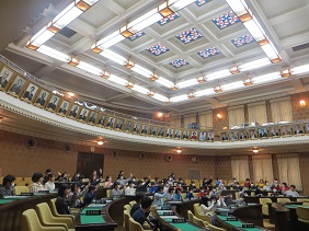 本日,京都市会は,台南市議会の頼美恵(ライミエ)議長をはじめとする議員の皆様方をお迎えし,両議会間の友好交流協定締結式を開催しました。