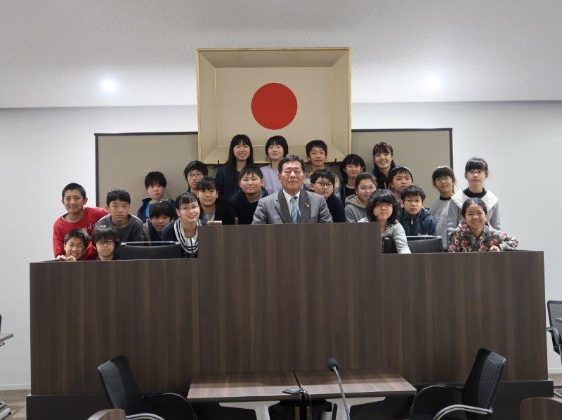 市立安朱小学校の皆さんが市会議場の見学に来られました。