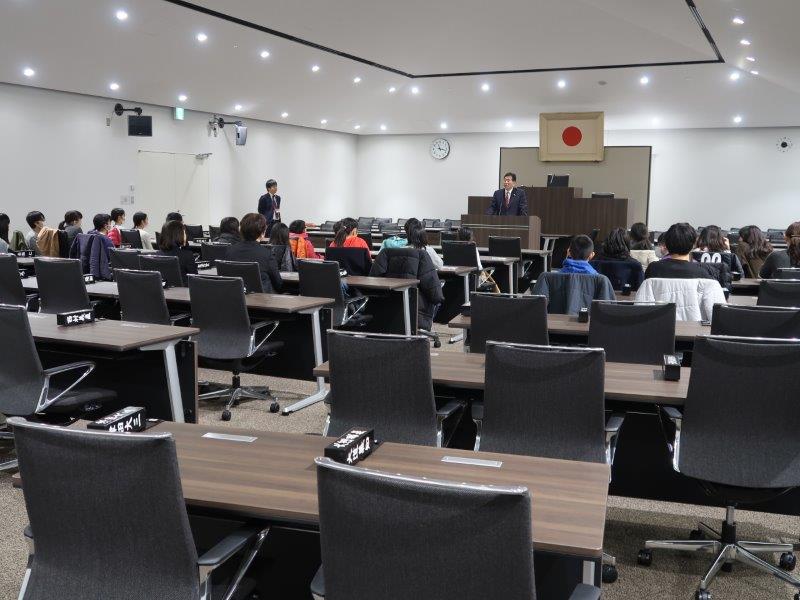 中学生の皆さんが市会議場の見学に来られました。