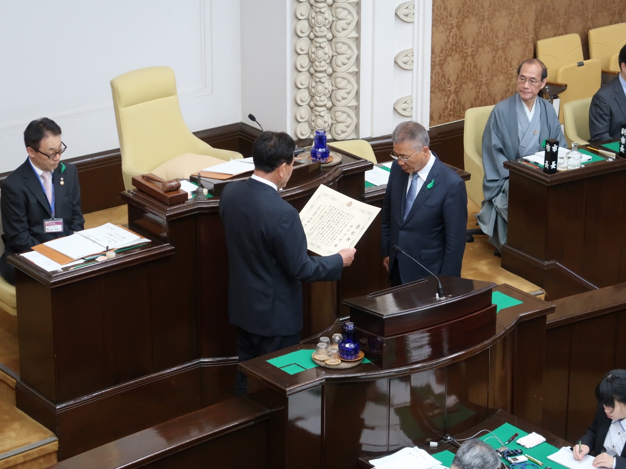 全国市議会議長会表彰の伝達表彰式が行われました。