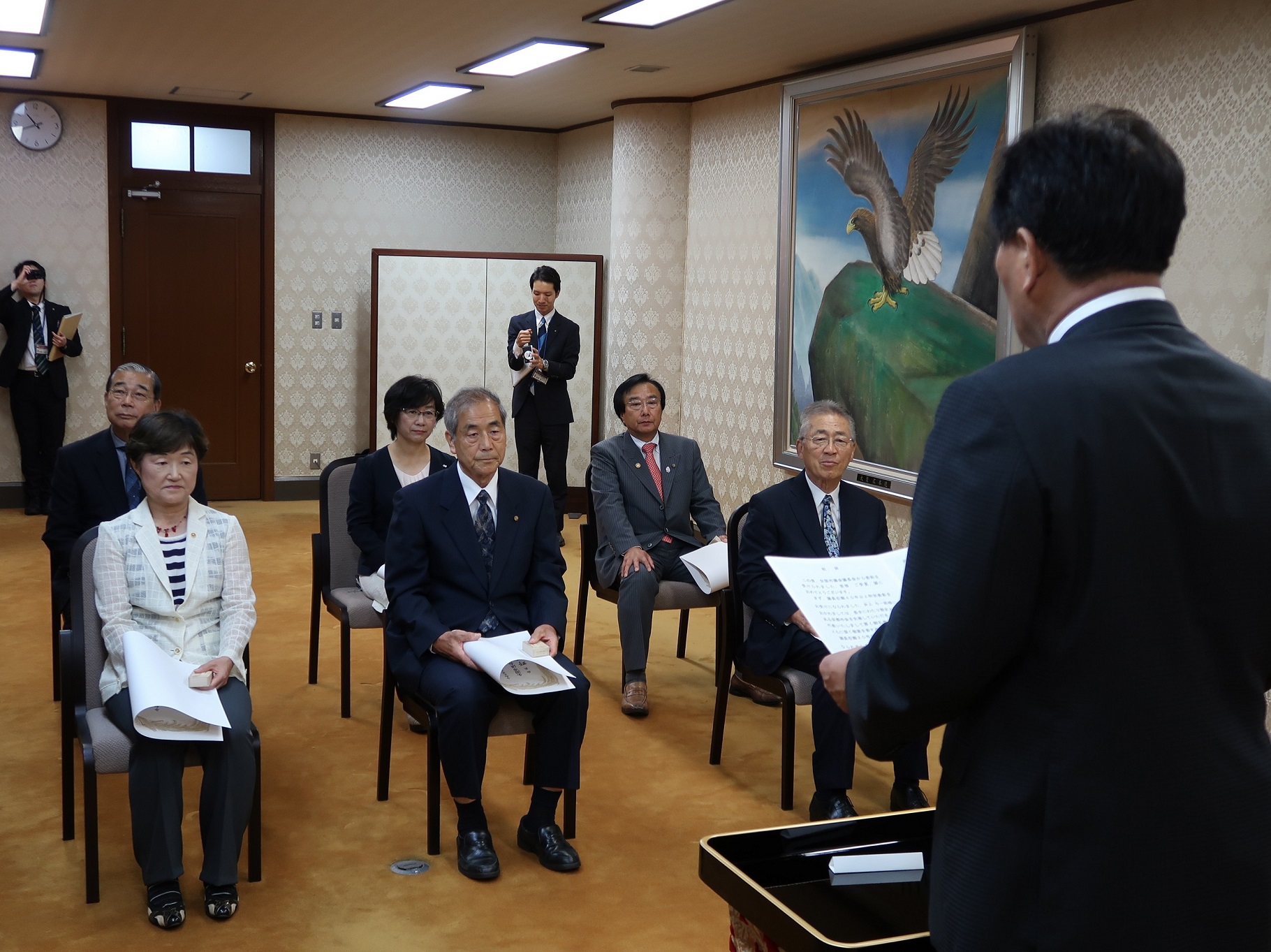 6月11日に東京で開催された全国市議会議長会定期総会で,次の方々が表彰を受けられ,7月22日に,議長から表彰状の伝達と記念品の授与が行われました。