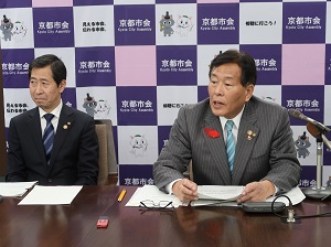 就任記者会見において,山本議長は「今年は,令和元年,京都市会ができて130周年の節目の年である。これまで以上に,行政への監視機能と政策提案・立案等の議会の権能を十分に発揮して,京都市政発展のために尽くしたい。」,また青野副議長は,「市民の皆様に信頼していただける議会構築に向けて,副議長としての職務を全うしたい。」とそれぞれの抱負を述べました。