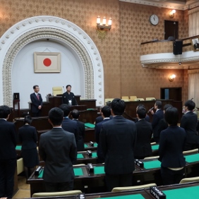 また,本会議の中で,株式会社京都アニメーションにおける火災によって犠牲となられた方々に対して,お悔やみを申し上げ,黙とうをささげました。