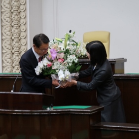 任期満了に伴い,4月29日をもって退任される寺田議長と湯浅副議長の退任セレモニーを行いました。