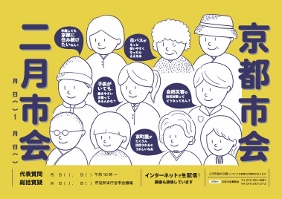 代表質疑は2月27日木曜日・28日金曜日の午前10時から,予算特別委員会総括質疑は,3月13日金曜日・16日月曜日の午前10時から行います。代表質疑はKBS京都テレビでも生中継しますので,ぜひ御覧ください。