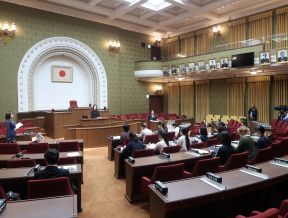 本日は、生徒の皆さんに市会議場にお越しいただき、議場の雰囲気を体感しながら、京都市会について学んでいただきました。