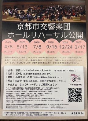 令和7年3月に設立された文化芸術振興京都市会議員連盟は、本市の文化芸術振興施策の推進と文化芸術団体等の活動を支援することを目的に活動をしています。令和8年度は、京都市交響楽団が創立70周年を迎える記念の年であり、その活動を応援するため、京響友の会の金曜定期会員(通年)に加入しています。
