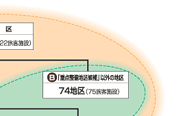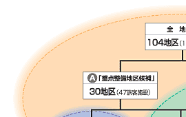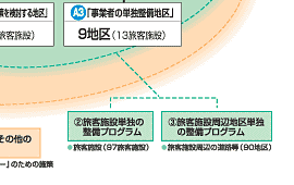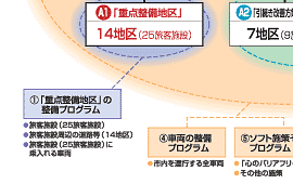 上の図は,5つのプログラム( 〜 )と,その対象となる地区や旅客施設を示しています。 |
